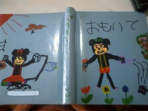 保育園児の頃のアルバム。そして当時描いた表紙の絵。